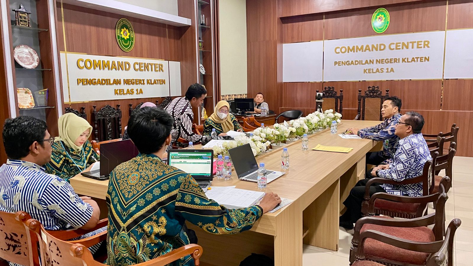 Di Pengadilan Negeri Klaten, tim Ditjen Badilum berkunjung dalam penilaian layanan dan administrasi perkara, disambut oleh Ketua PN Klaten R. Aji Suryo, S.H., M.H. TIm Ditjen Badilum berdiskusi dengan para pejabat dan pegawai Pengadilan Negeri Klaten tentang layanan yang diberikan kepada pencari keadilan. Sebelumnya PN Klaten telah lolos penilaian layanan di tahap administrasi dan wawancara daring. Di Pengadilan Negeri Klaten, tim Ditjen Badilum memeriksa administrasi perkara, termasuk pengarsipan berkas perkara yang sudah diputus pengadilan.
