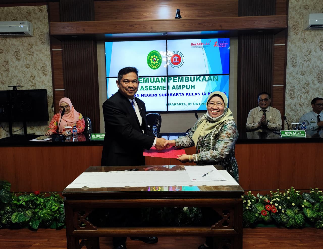Di PN Surakarta, dilakukan penilaian Sertifikasi Mutu Pengadilan Unggul dan Tangguh (AMPUH) dengan wawancara , uji petik dan pemeriksaan dokumen untuk melihat kesesuaian pelayanan utama dan pendukung dengan aturan Mahkamah Agung RI.