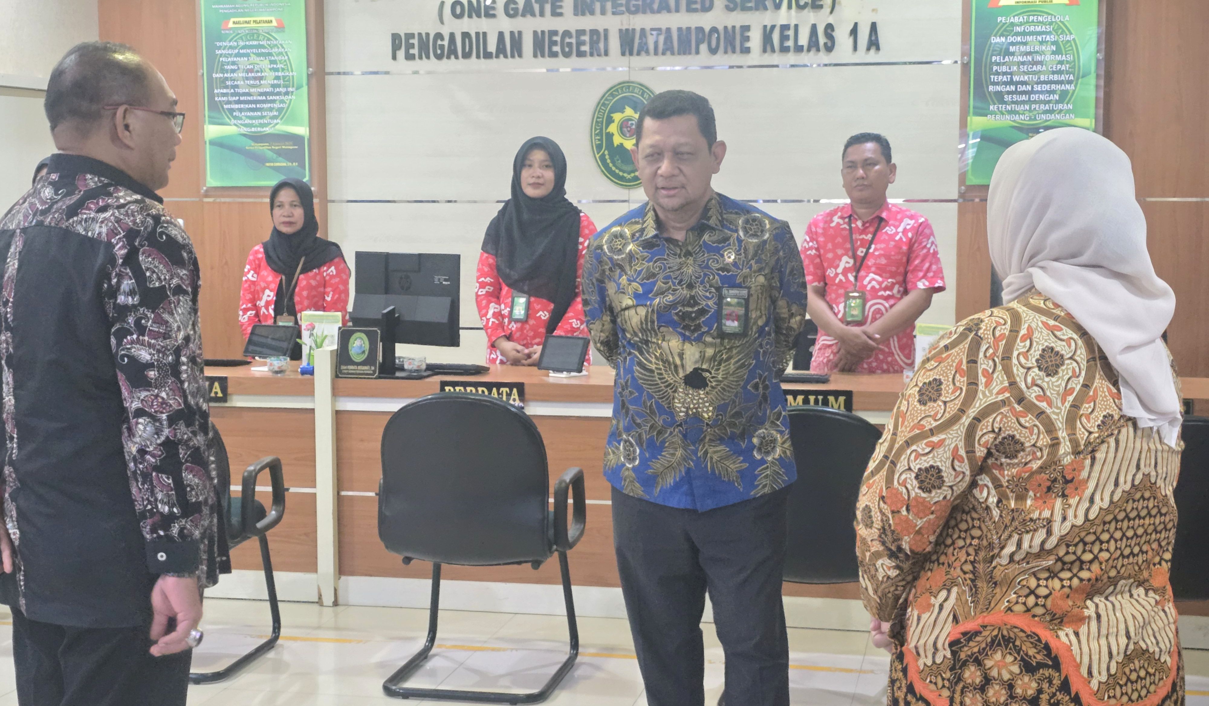 Dirjen Badilum dalam kunjungannya meninjau keadaan sarana dan prasarana seperti ruang sidang Pengadilan Negeri Watampone. Dirjen Badilum juga meninjau kualitas pelayanan dan berbincang dengan petugas Pelayanan Terpadu Satu Pintu (PTSP) di Pengadilan Negeri Watampone. Dirjen Badilum juga berkunjung ke ruang kerja dan melihat aktivitas para pegawai Pengadilan Negeri Watampone.