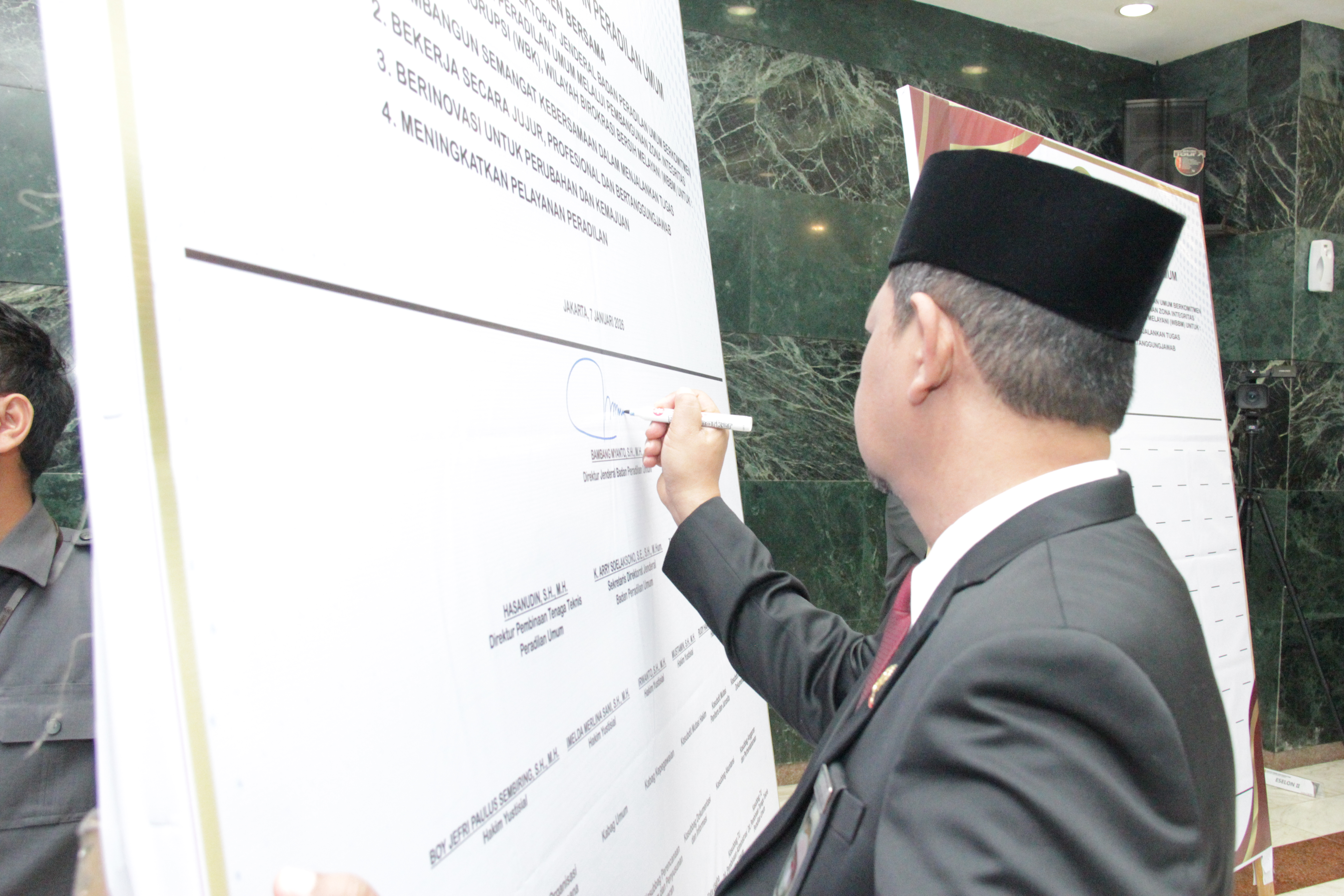 Awali Tahun 2026, Seluruh Pejabat dan Pegawai Ditjen Badilum Tandatangani Pakta Integritas dan Komitment Bersama