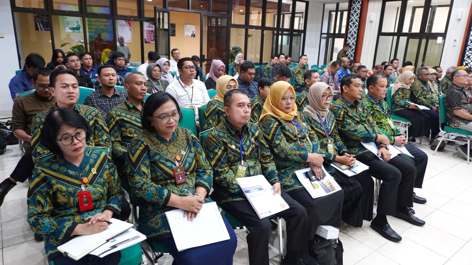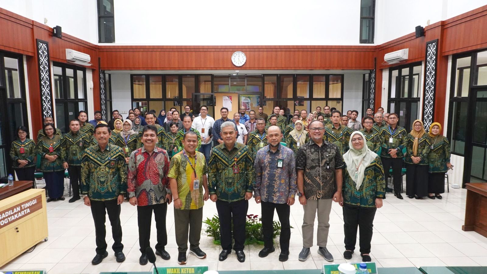 Kegiatan evaluasi ini dihadiri oleh Direktur Pembinaan Administrasi Peradilan Umum Zahlisa Vitalita, S.H., M.H., Direktur Pembinaan Administrasi Peradilan Agama Sutarno, S.I.P., M.M., perwakilan dari Direktorat Jenderal Badan Peradilan Militer Dan Peradilan Tata Usaha Negara, Ketua Pengadilan Tinggi Yogyakarta Prof. Dr Herri Swantoro, S.H., M.H., Wakil Ketua Pengadilan Tinggi Yogyakarta Dr. Sutio Jumadi Akhirno, S.H., M.Hum. hakim tinggi Pengadilan Tinggi Yogyakarta serta pimpinan pengadilan tingkat pertama wilayah Yogyakarta dari empat lingkungan peradilan.