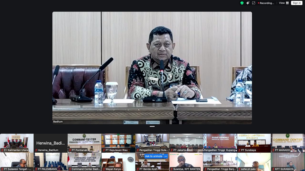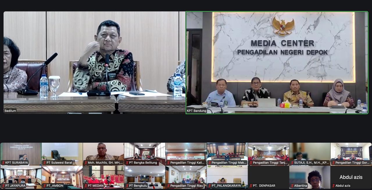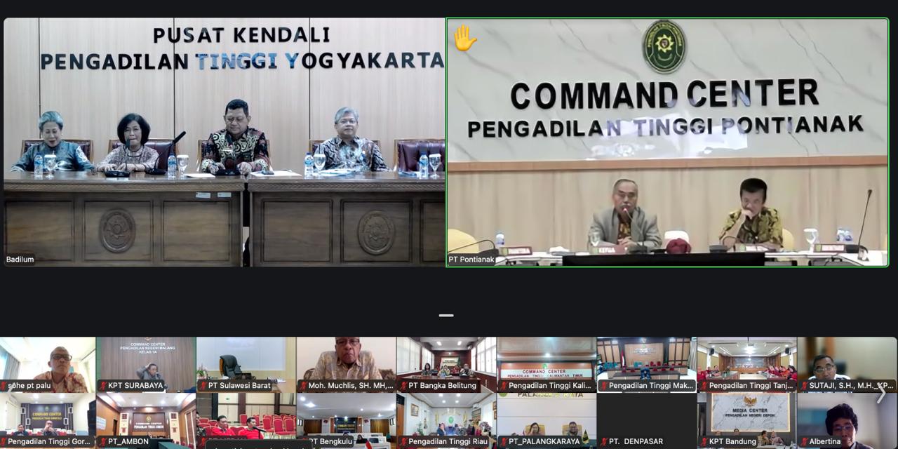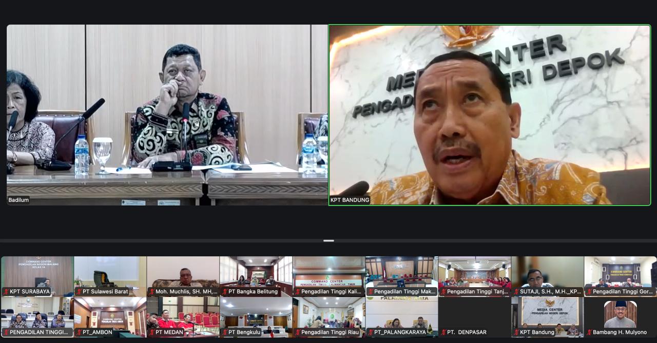 Menindaklanjuti pembinaan yang dilakukan oleh pimpinan Mahkamah Agung, Direktorat Jenderal Badan Peradilan Umum melaksanakan rapat koordinasi bersama dengan para Ketua Pengadilan Tinggi secara daring pada Jumat, 6 Februari 2026. Dari Pengadilan Tinggi Yogyakarta, Direktur Jenderal Badan Peradilan Umum, H. Bambang Myanto, S.H., M.H., memimpin rapat ini dengan didampingi oleh Direktur Pembinaan Tenaga Teknis Peradilan Umum, Hasanudin, S.H., M.H. Dirjen Badilum membahas langkah dan strategi yang perlu diambil untuk mencegah terulangnya kembali pelayanan transaksional yang dilakukan oleh aparatur peradilan di lingkungan peradilan umum sebagaimana yang baru saja dilakukan oleh oknum di Pengadilan Negeri Depok. Dirjen Badilum kembali mengingatkan untuk senantiasa menjaga integritas dan pelanggaran terhadap integritas merupakan hal yang menodai citra instansi. Untuk itu, Dirjen Badilum memohon kepada para Ketua Pengadilan Tinggi untuk dapat bersama-sama mencari solusi dan juga dapat menyampaikan hal ini kepada para jajaran di bawahnya.
