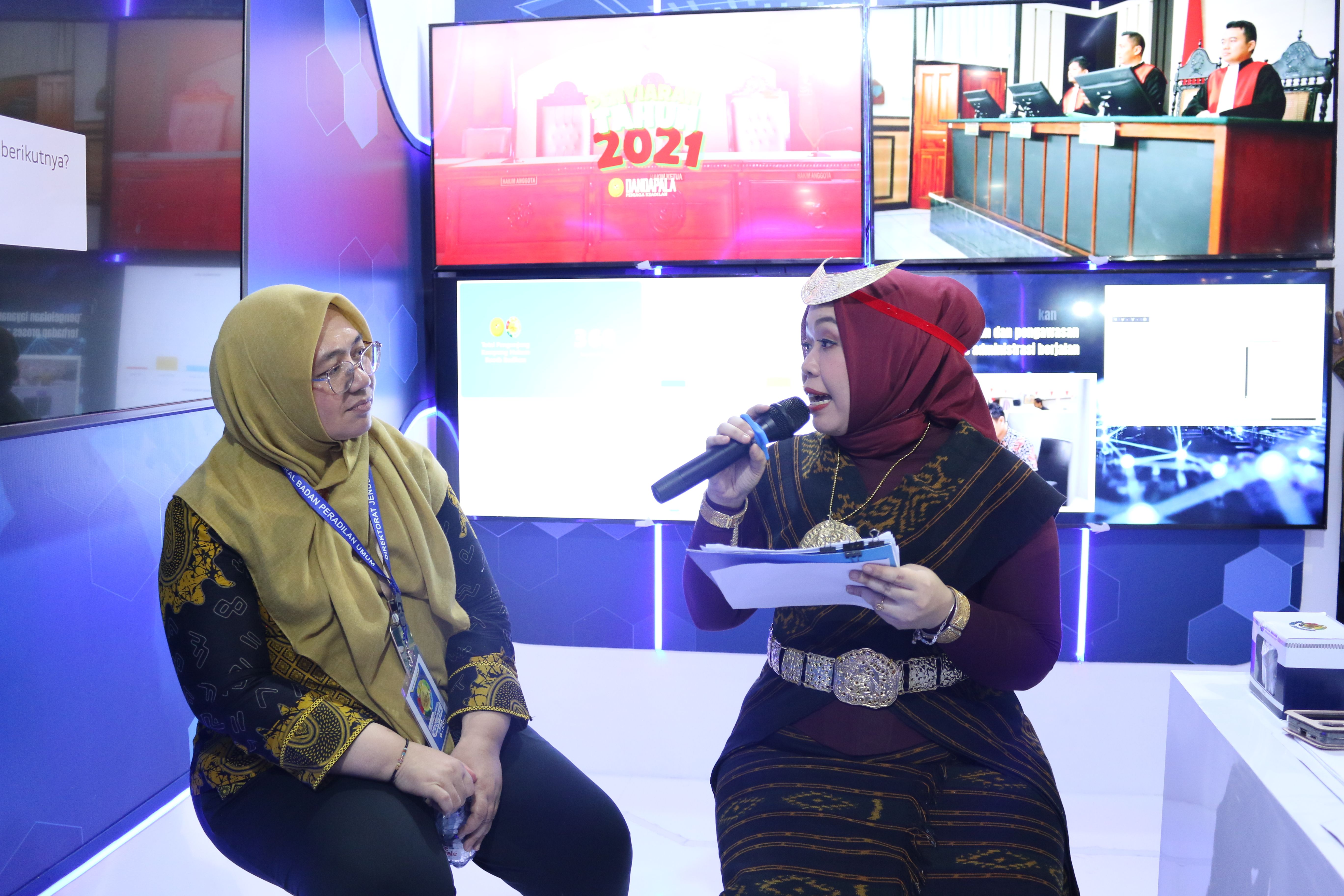 Ketua Mahkamah Agung RI, Prof. Dr. H. Sunarto, S.H., M.H beserta para pimnan, hakim agung, ketua pengadilan tinggi dan pengadilan negeri, hingga mahasiswa dan masyarakat umum meramaikan pameran ini. Dengan ikut sertanya Ditjen Badilum di pameran ini, diharapkan informasi terbaru peradilan umum dan kebijakan Ditjen Badilum dapat tersampaikan, sehingga dapat mebantu terlaksananya tugas dari Ditjen Badilum dalam pembinaan kepada lingkungan peradilan umum.