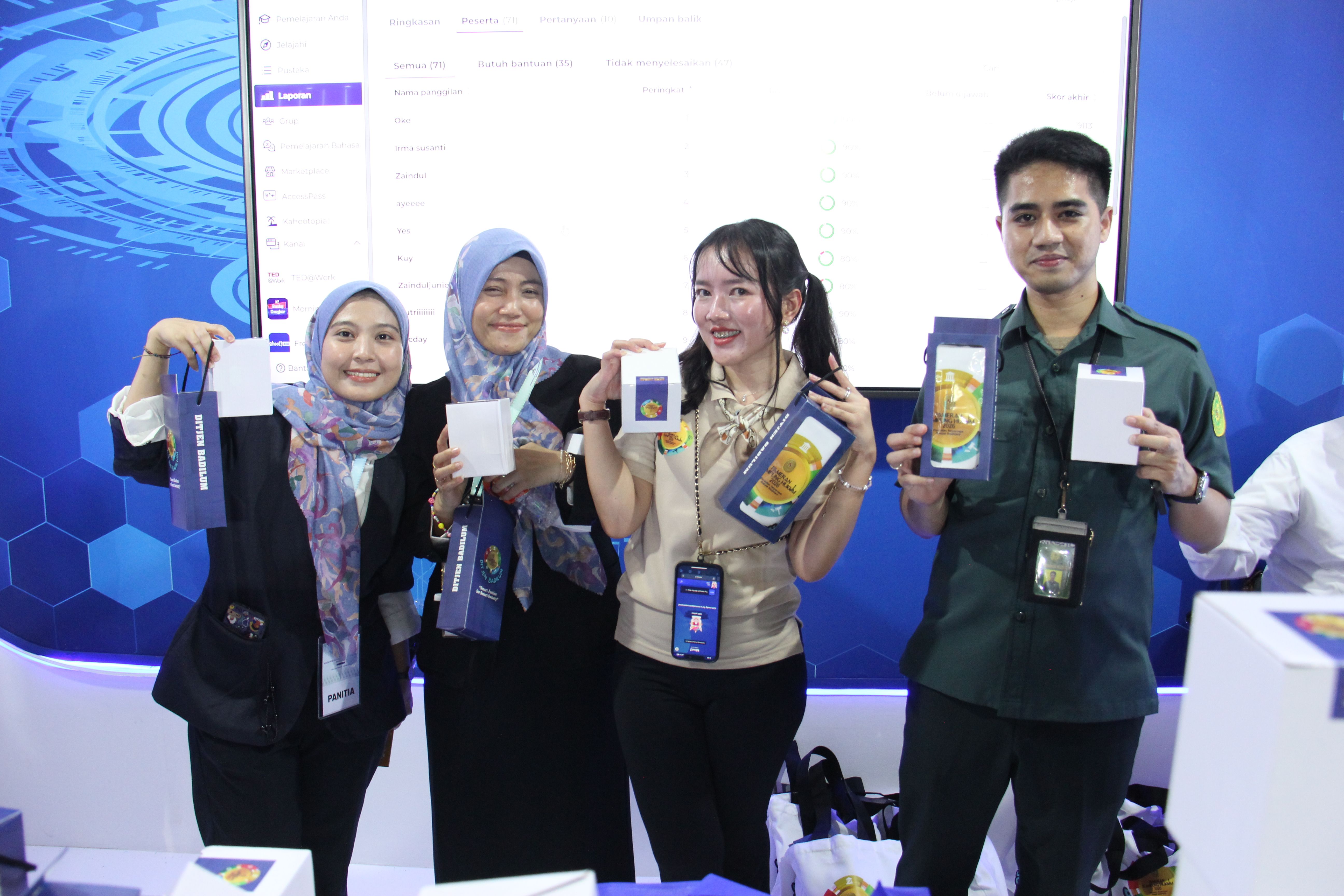Booth Ditjen Badilum di Pameran Kampung Hukum 2026 yang dimulai hari ini, Senin, 09 Februari 2026 ramai dikunjungi. Para pimpinan Mahkamah Agung RI, warga peradilan hingga mahasiswa ramai berkunjung melihat langsung capaian dan inovasi Ditjen Badilum. Dalam pameran ini, Ditjen Badilum menampilkan inovasi terbaru antara lain, aplikasi E-BIMANTARA (Aplikasi Biaya Mutasi Elektronik Terintegrasi), SIMETRI (Sistem Persuratan Elektronik Terintegrasi) dan BLC (Badilum Learning Center).