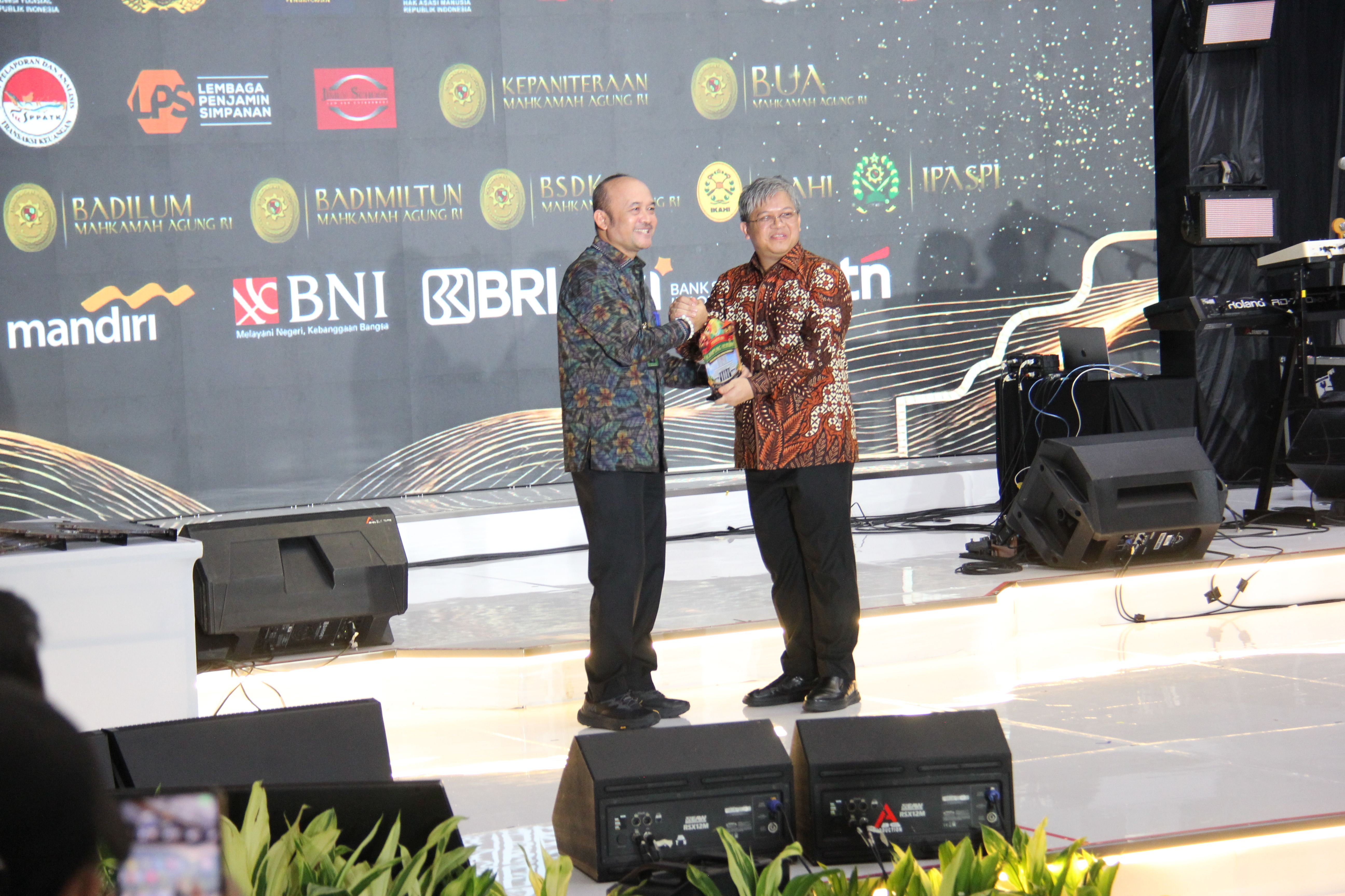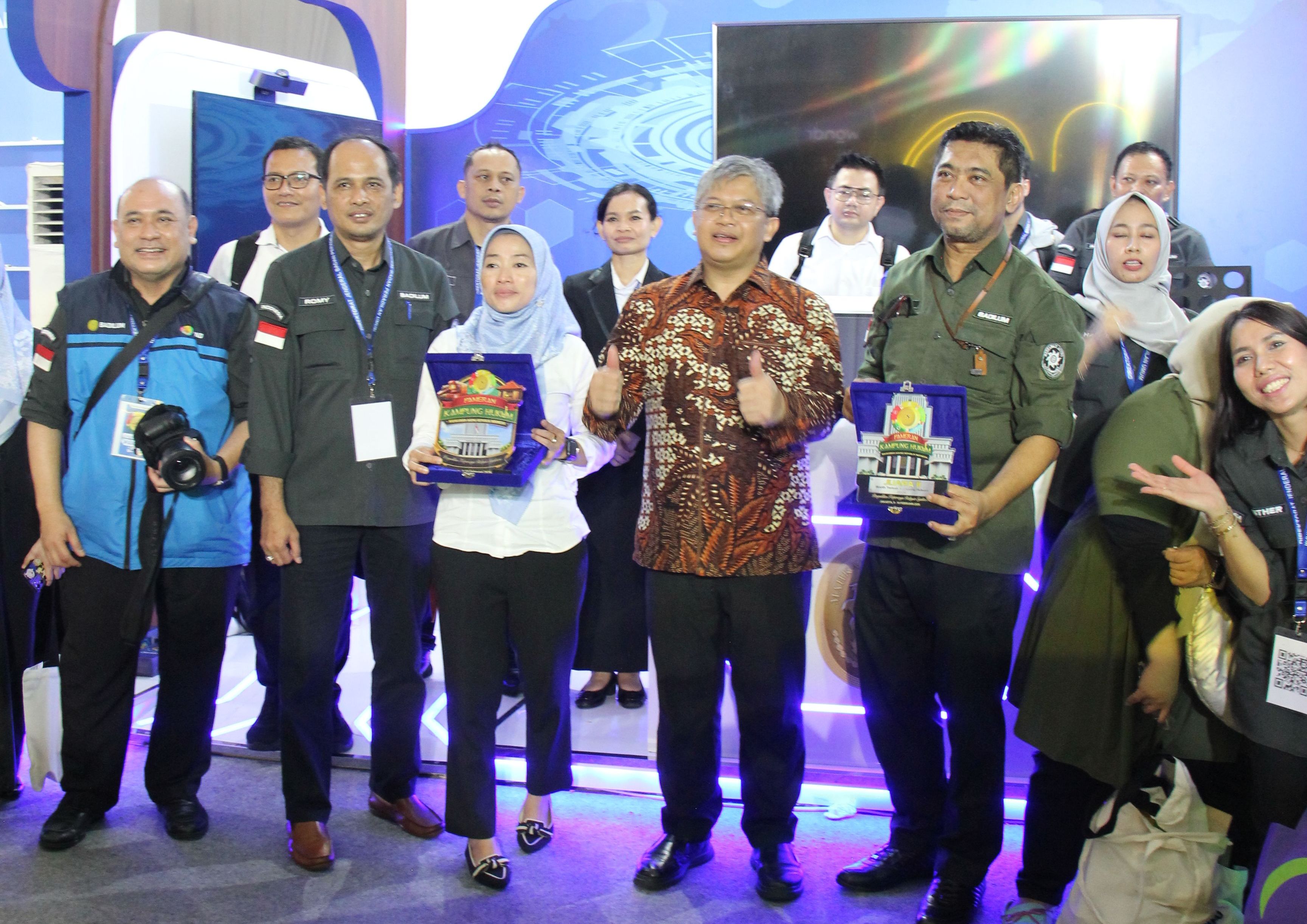 Penghargaan kepada booth Ditjen Badilum diberikan Kepala Badan Urusan Administrasi MA Dr. H. Sobandi, S.H., M.H. ke Direktur Pembinaan Tenaga Teknis Hasanudin S.H., M.H. Penghargaan ini kemudian diserahkan kepada ketua panitia Pameran Kampung Hukum Ditjen Badilum, Junaedi Kamaludin, S.E. M.Si (Kepala Subdit. Mutasi Panitera dan Jurusita).
