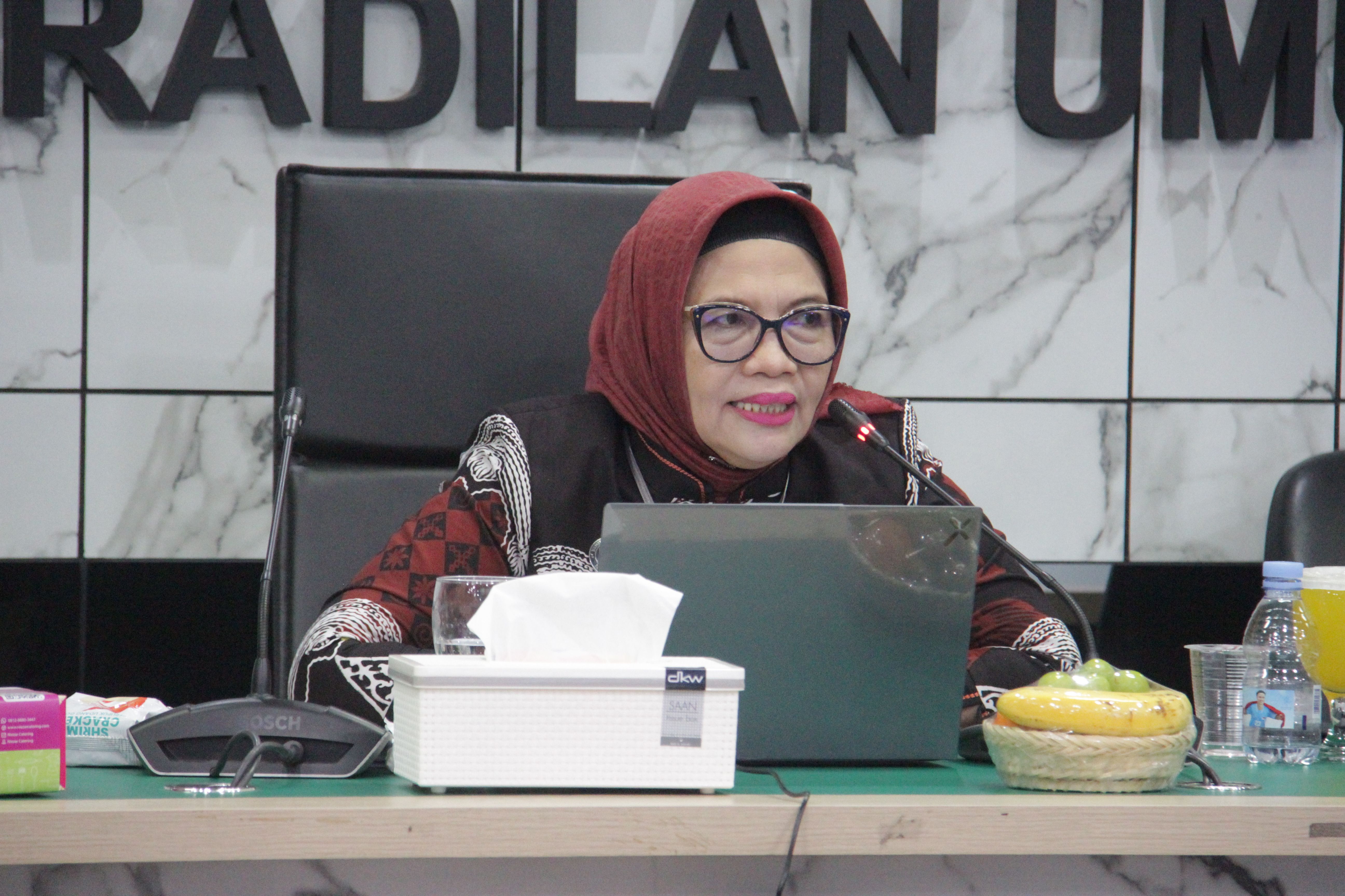 Ketua Pengadilan Tinggi Riau, Dr. Hj. Diah Sulastri Dewi, S.H., M.H. menyampaikan materi pertama tentang implementasi Peraturan Mahkamah Agung Nomor 1 Tahun 2016 Prosedur Mediasi di Pengadilan.