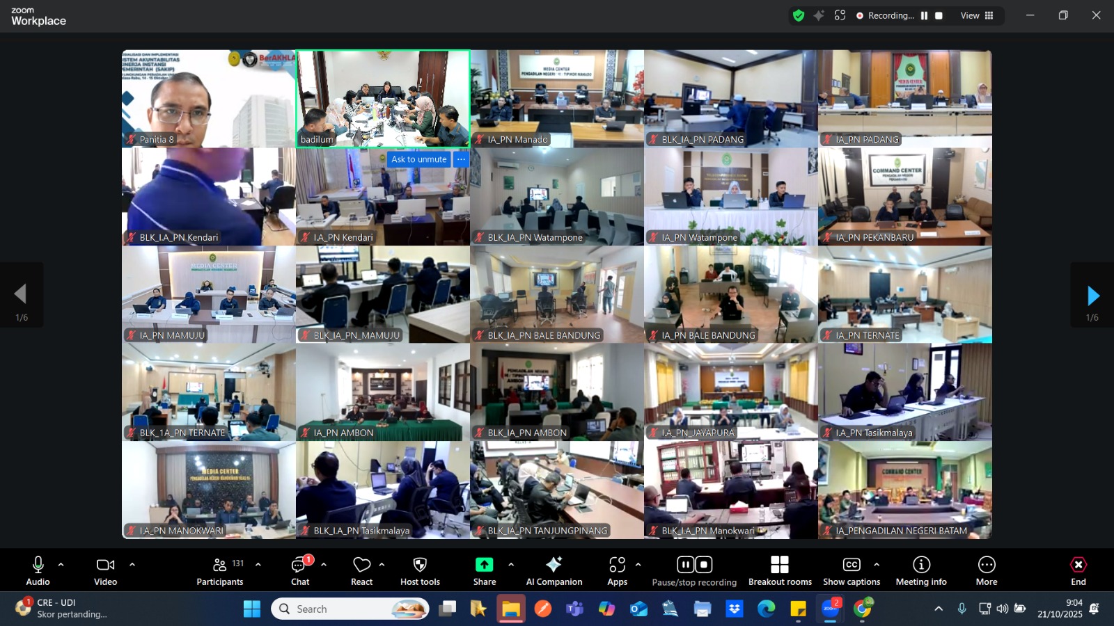 Untuk meningkatkan kinerja para panitera muda di lingkungan peradilan umum dalam memberikan pelayanan, maka diperlukan evaluasi berkala terhadap kinerjanya. Oleh karena itu, Direktorat Jenderal Badan Peradilan Umum menyelenggarakan uji substansi terhadap para panitera muda, baik pada pengadilan tingkat pertama, maupun pada pengadilan tingkat banding yang berlangsung mulai tanggal 20 s.d. 23 Oktober 2025 secara daring. Bertempat di Ruang Command Center Ditjen Badilum, Direktur Jenderal Badan Peradilan Umum, H. Bambang Myanto, S.H., M.H., membuka kegiatan ini dengan didampingi oleh Direktur Pembinaan Tenaga Teknis Peradilan Umum, Hasanudin, S.H., M.H. Pada kesempatan tersebut, Dirjen Badilum menyampaikan agar para panitera muda dapat mengikuti uji substansi dengan sebaik-baiknya dan tentu tetap mengedepankan integritas. Selain itu, beliau juga berpesan agar para panitera muda khususnya, juga menjaga integritas dalam melaksanakan pekerjaannya, terutama jika berhubungan dengan pihak yang berperkara demi mengembalikan kepercayaan publik kepada pengadilan dan Mahkamah Agung RI. Materi uji substansi ini di antaranya terkait administrasi perkara dan kode etik. Pelaksanaan uji substansi dibagi menjadi empat hari dan para peserta dibagi ke dalam beberapa kelompok berdasarkan kelas pengadilan dan wilayahnya. Para peserta mengikuti ujian secara daring dan didampingi oleh pengawas serta terhubung secara videoconference melalui Zoom.