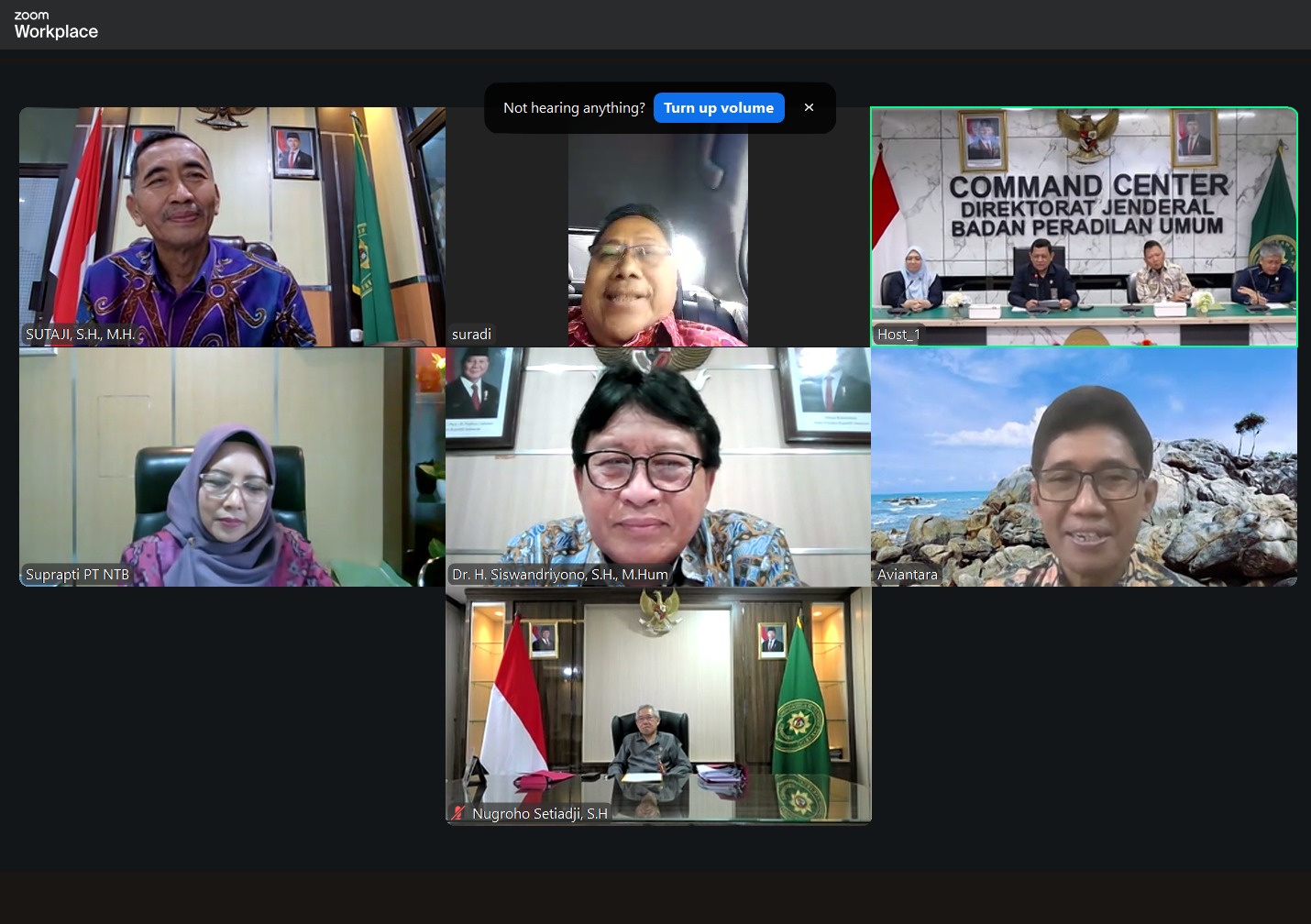 Direktur Jenderal Badan Peradilan Umum H. Bambang Myanto, S.H., M.H. didampingi para pejabat Eselon II secara daring membuka kegiatan Uji Kelayakan dan Kepatutan Calon Pimpinan Pengadilan Negeri Kelas II, yang digelar dari tanggal 24-27 November 2025.