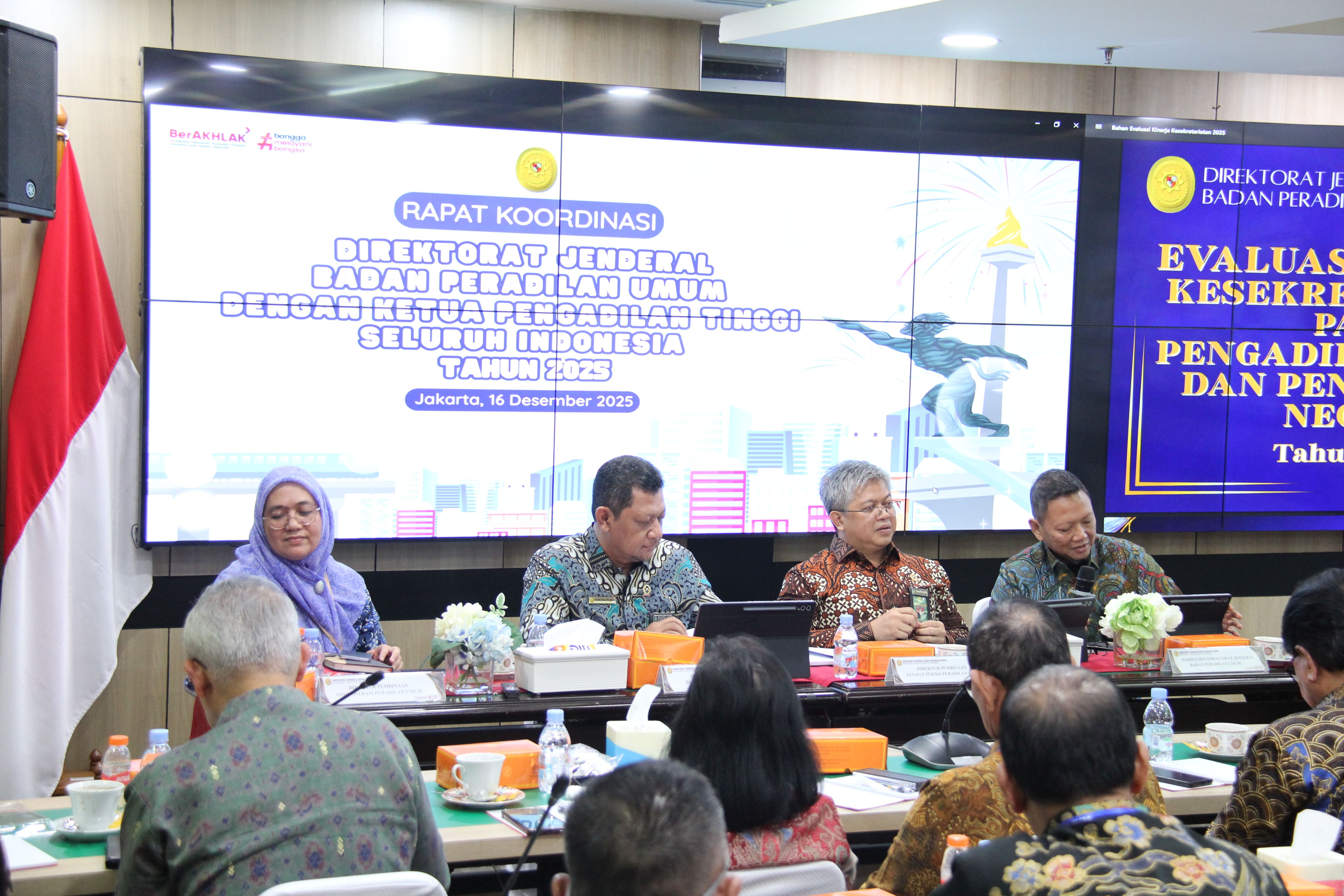 Dalam rangka mengkoordinir pelaksanaan tugas pengadilan tinggi sebagai kawal depan Mahkamah Agung RI, Direktorat Jenderal Badan Peradilan Umum menghadirkan para ketua Pengadilan Tinggi seluruh Indonesia di Gedung Sekretariat Mahkamah Agung RI, pada hari Selasa, 18 Desember 2025