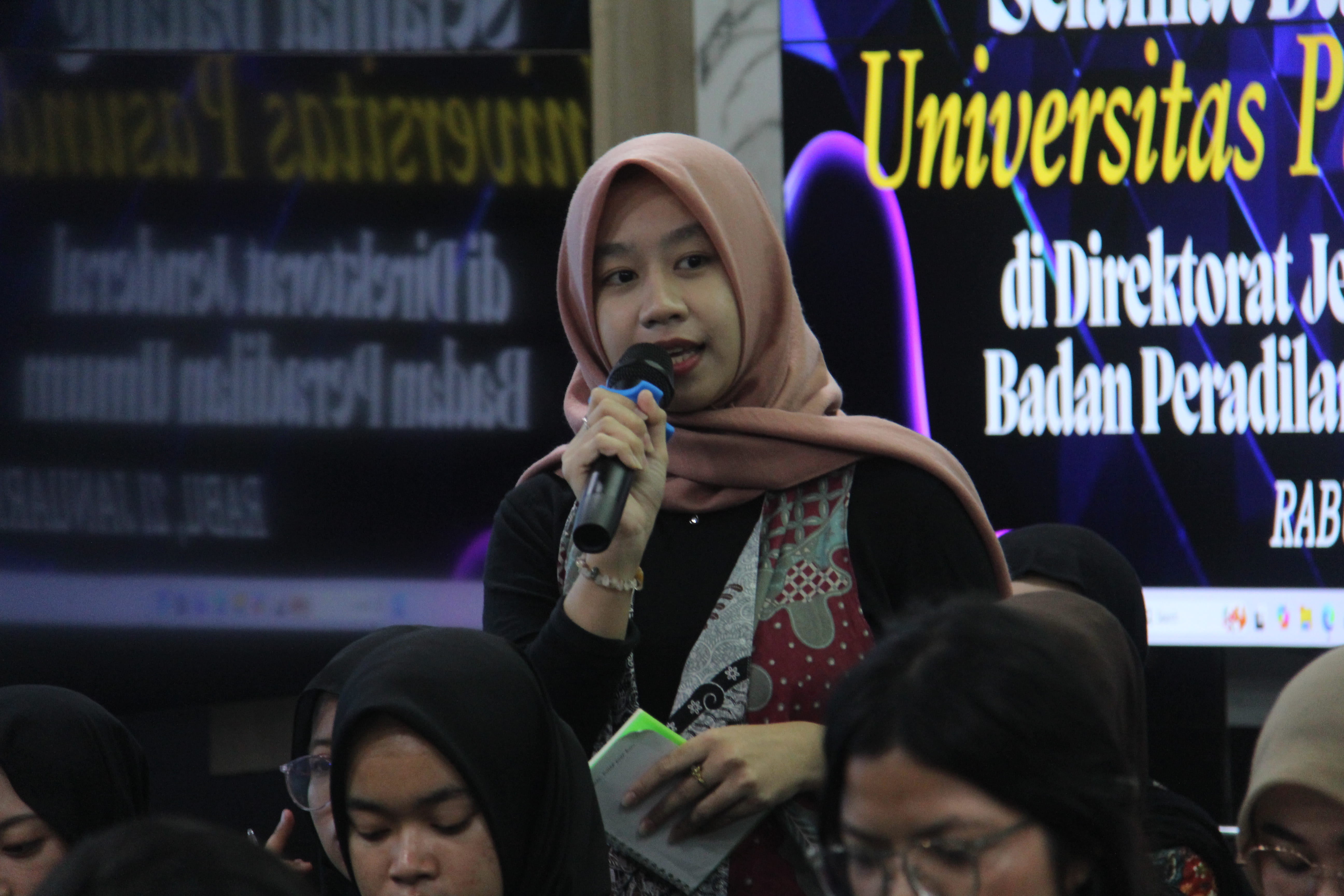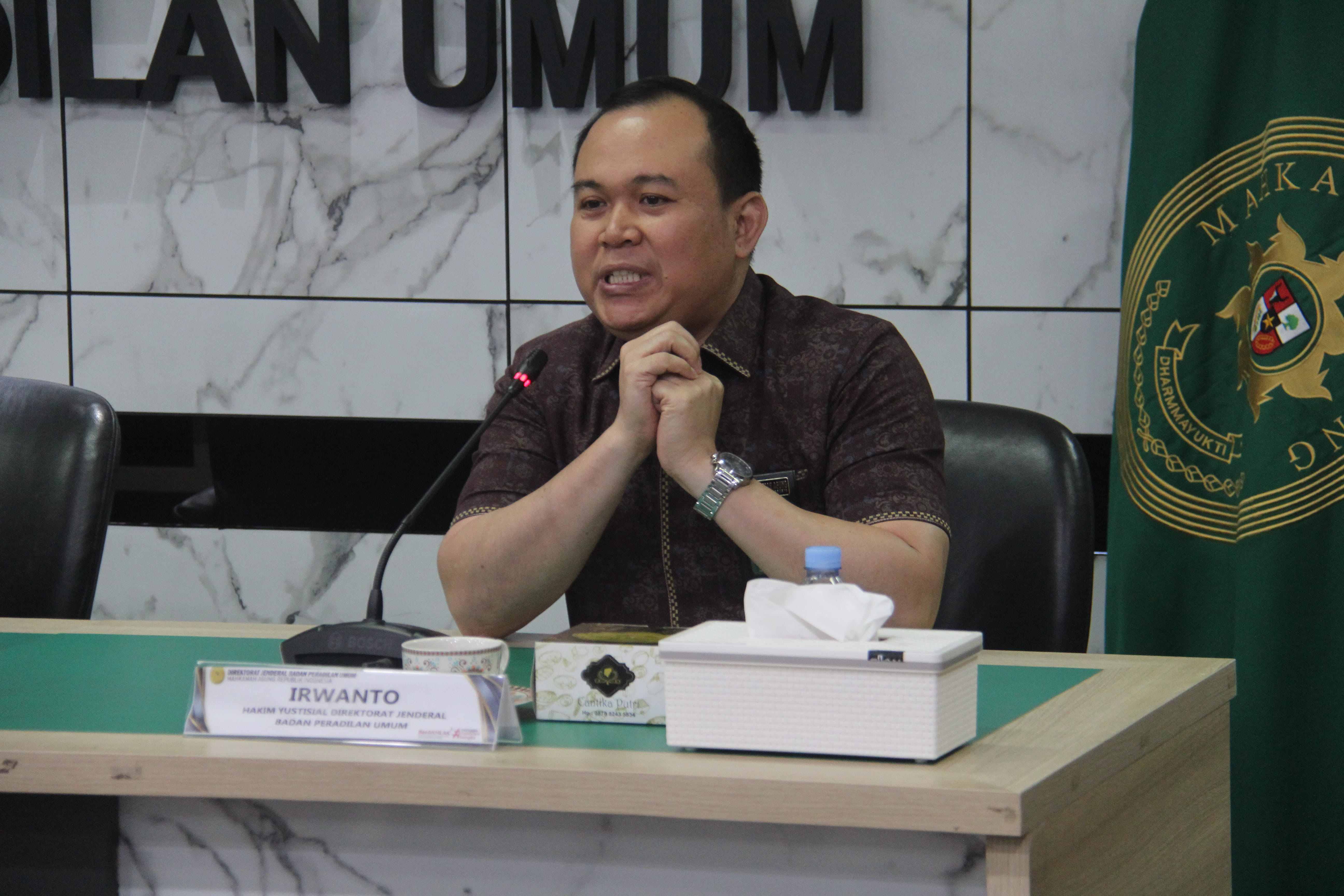 Kegiatan ini, dibuka dengan sambutan oleh Sekretaris Ditjen Badilum, Kurnia Arry Soelaksono, S.E., S.H., M.Hum., dan Direktur Pembinaan Administrasi Peradilan Umum, Zahlisa Vitalita, S.H., M.H. Para peserta diberikan pengenalan sekaligus gambaran mengenai Ditjen Badilum secara umum. Selanjutnya, kegiatan diisi oleh pemaparan dari Irwanto, S.H., M.H. selaku hakim yustisial pada Ditjen Badilum. Pada kesempatan ini, beliau menjelaskan mengenai bagaimana hakim bekerja dan menyampaikan pentingnya integritas sebagai seorang hakim. Selain itu, turut hadir menyampaikan pemaparan, yaitu Kepala Subdirektorat Mutasi Hakim, Romy Permana, S.H., M.H., Kepala Bagian Perencanaan dan Keuangan, Nopinus Andereas Purba, S.E., M.M., dan Kepala Subdirektorat Tata Kelola, Candra, S.H. Pemaparan yang disampaikan di antaranya mengenai bagaimana administrasi di peradilan umum, penganggaran dan administrasi keuangan, serta pola mutasi hakim yang berjalan. Setelah pemaparan, kegiatan dilanjutkan dengan sesi tanya jawab dengan para mahasiswa yang menunjukkan antusiasmenya yang tinggi terkait Ditjen Badilum maupun lingkungan peradilan umum. Dengan adanya kegiatan ini, diharapkan para mahasiswa dapat lebih mengenal Ditjen Badilum dan seperti apa peran hakim sebagai aparat penegak hukum di Indonesia