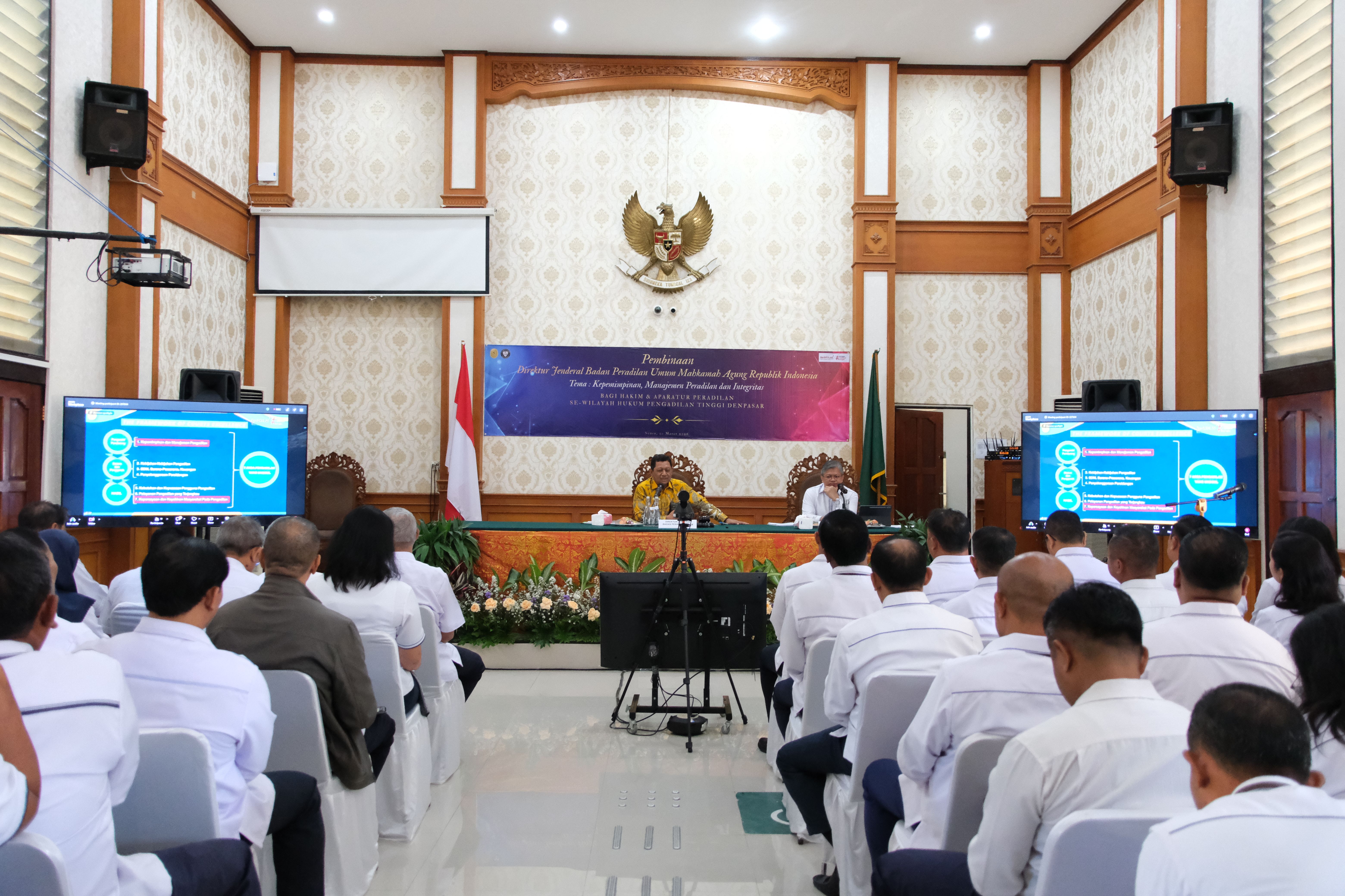 Bertempat di Pengadilan Negeri Denpasar, Direktur Jenderal Badan Peradilan Umum H. Bambang Myanto, S.H., M.H. memberikan materi tentang Kepemimpinan Teknis dan Integritas kepada aparat peradilan umum se-Provinsi Bali.