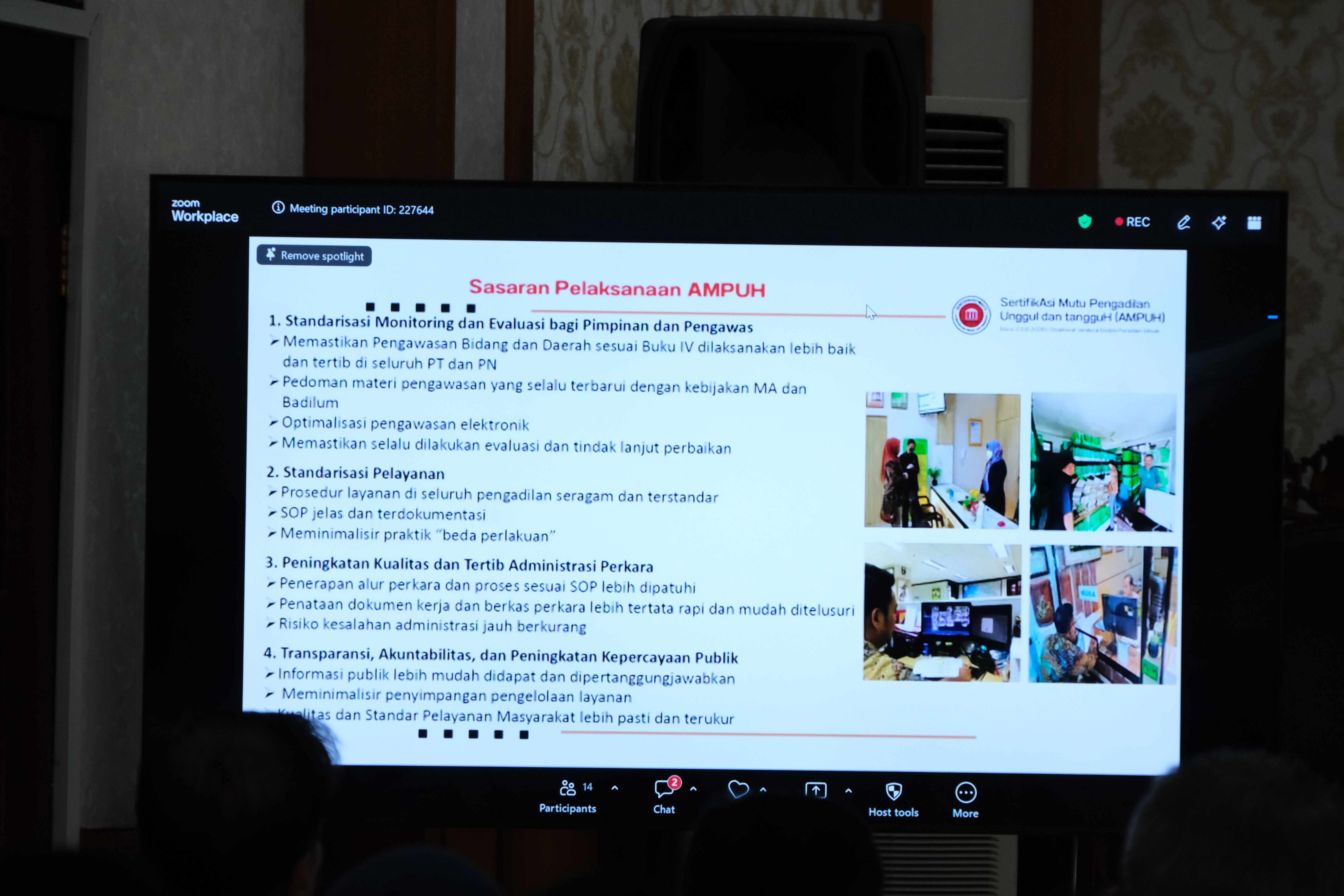 Direktur Jenderal Badan Peradilan Umum H. Bambang Myanto, S.H., M.H. dalam pembinaan ini menyampaikan pimpinan peradilan harus memiliki kompetensi dan kemampuan manajemen, untuk memulihkan kembali kepercayaan publik. Beliau menyampaikan Pimpinan pengadilan dituntut tidak hanya menjadi orang baik (Moral Person), tetapi juga manajer etika yang berani memberantas penyimpangan di lingkungan kerjanya (Moral Manager).